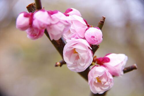 美しさとあでやかさ さすがに今シーズンの梅の花もラスト。既に咲き切った木々も多く、キレイな梅の花を探すのも結構大変です。その中でもこの花とつぼみだけは何故かとっても気になりまして、かなりじっくり観察していました。その割にはピント位置が今ひと…